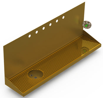 Sold out - Wall Mount Drip Tray with Left Drain and Rinser Hole | 8" X 36" X 14" X 1" | Brass | 7 Faucet Holes+sp.priceRaw ? 'price price--on-sale' : 'price'">