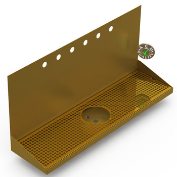 Sold out - Wall Mount Drip Tray with Drain and Rinser Hole | 8" X 30" X 14" X 1" | Brass | 7 Faucet Holes+sp.priceRaw ? 'price price--on-sale' : 'price'">