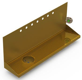 Sold out - Wall Mount Drip Tray with Left Drain and Rinser Hole | 8" X 36" X 14" X 1" | Brass | 7 Faucet Holes+sp.priceRaw ? 'price price--on-sale' : 'price'">