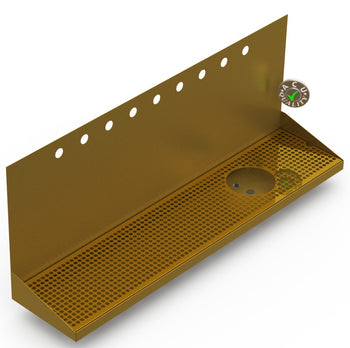Sold out - Wall Mount Drip Tray with Right Drain and Rinser Hole | 8" X 36" X 14" X 1" | Brass | 10 Faucet Holes+sp.priceRaw ? 'price price--on-sale' : 'price'">