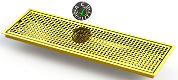 Sold out - Flush Mount 8" X 30" X ¾" Drip Tray with Double Drains | Recessed Beer Tray | Brass+sp.priceRaw ? 'price price--on-sale' : 'price'">