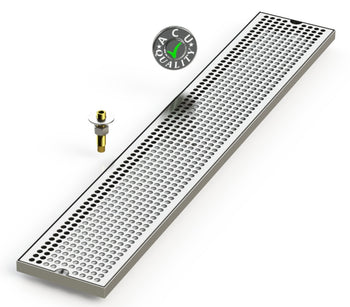 The (SMD) Surface Mount with Drain style drip trays are designed to sit on the top of any suitable surface for catching all excess draft beer or any other liquid while draining liquid (draft beer) from the built in drain.