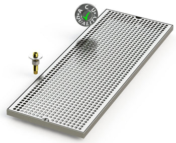 The (SMD) Surface Mount with Drain style drip trays are designed to sit on the top of any suitable surface for catching all excess draft beer or any other liquid while draining liquid (draft beer) from the built in drain.
