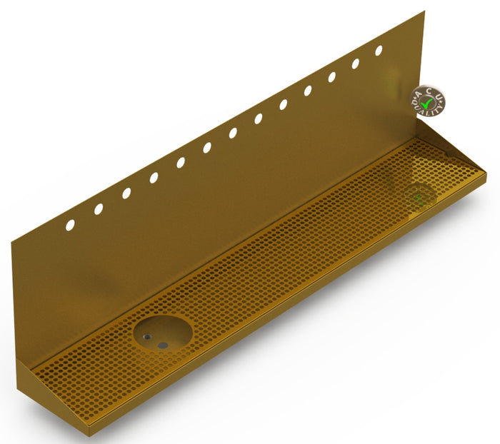 The WMD-style wall mounts are designed to mount to any suitable vertical surface and can be configured for multiple beer taps. The front edge of the tray is hemmed for reinforcement. All exposed edges are deburred smooth for safety and appearances. Each tray is available with a standard 16 gauge perforated screen. Drains are 1 1/2" long, 1/2" NPT Pipe Thread. Angled bottom for drainage.