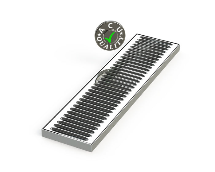 The SM (Surface Mount) style drip trays are designed to sit on the top of any suitable surface. Drip Trays are made of 18 GA. Stainless Steel in #8 mirror finish. The corners and seams are welded and ground to a mirror finish. All exposed edges are deburred smooth for safety and appearances. Each tray comes with a standard 20 GA. louvered screen.