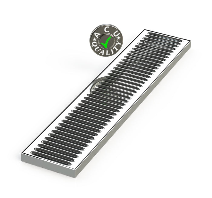 The SM (Surface Mount) style drip trays are designed to sit on the top of any suitable surface. Drip Trays are made of 18 GA. Stainless Steel in #8 mirror finish. The corners and seams are welded and ground to a mirror finish. All exposed edges are deburred smooth for safety and appearances. Each tray comes with a standard 20 GA. louvered screen.
