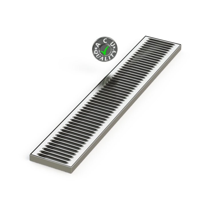 The SM (Surface Mount) style drip tray is designed to sit on the top of any suitable surface. Our Drip Trays are made of 18 GA. Stainless Steel in #4 finish Brushed Finish. The corners and seams are welded and ground to a brushed finish. All exposed edges are deburred smooth for safety and appearances. Each tray comes with a standard 20 GA. louvered screen.