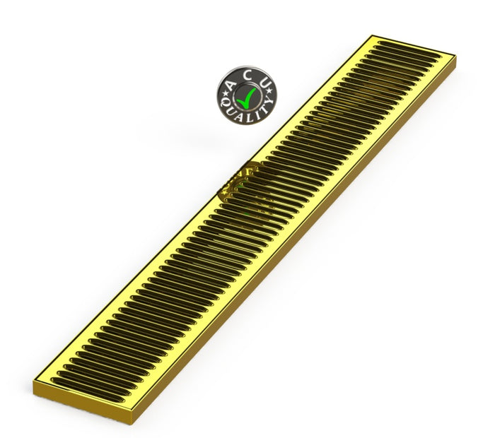 5" x 37" Brass Mirror Finish Surface Mount Beer Drip Tray - No Drain