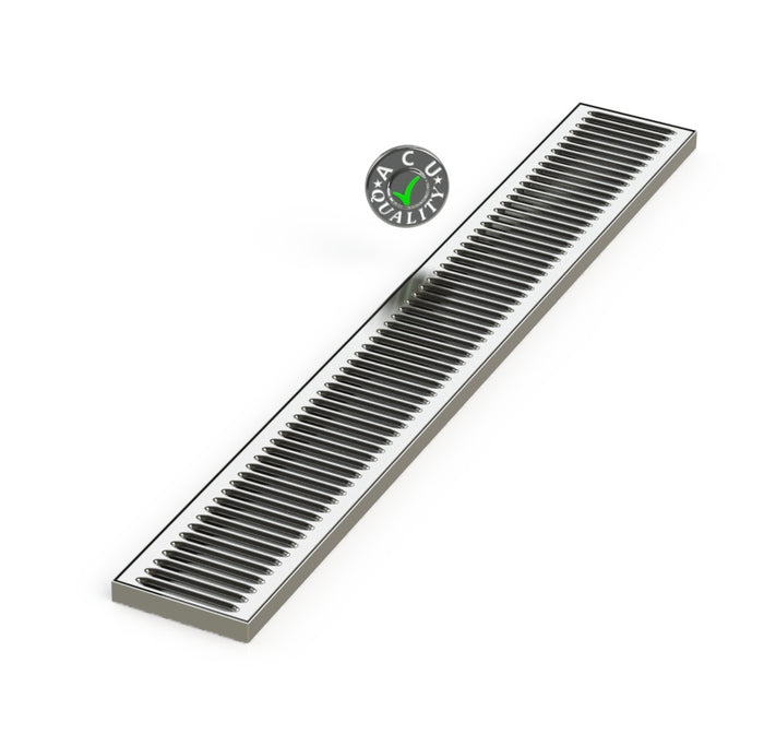 The SM (Surface Mount) style drip tray is designed to sit on the top of any suitable surface. Our Drip Trays are made of 18 GA. Stainless Steel in #4 finish Brushed Finish. The corners and seams are welded and ground to a brushed finish. All exposed edges are deburred smooth for safety and appearances. Each tray comes with a standard 20 GA. louvered screen.