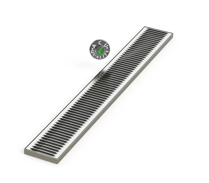 The SM (Surface Mount) style drip tray is designed to sit on the top of any suitable surface. Our Drip Trays are made of 18 GA. Stainless Steel in #4 finish Brushed Finish. The corners and seams are welded and ground to a brushed finish. All exposed edges are deburred smooth for safety and appearances. Each tray comes with a standard 20 GA. louvered screen.