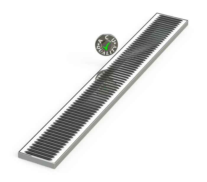 The SM (Surface Mount) style drip trays are designed to sit on top of any suitable surface. Drip Trays are made of 18 GA. Stainless Steel in #8 mirror finish. The corners and seams are welded and ground to a mirror finish. All exposed edges are deburred smooth for safety and appearance. Each tray comes with a standard 20 GA. louvered screen.