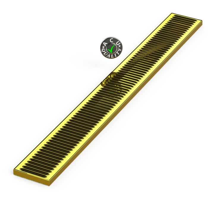 5" x 45" Brass Mirror Finish Surface Mount Beer Drip Tray - No Drain