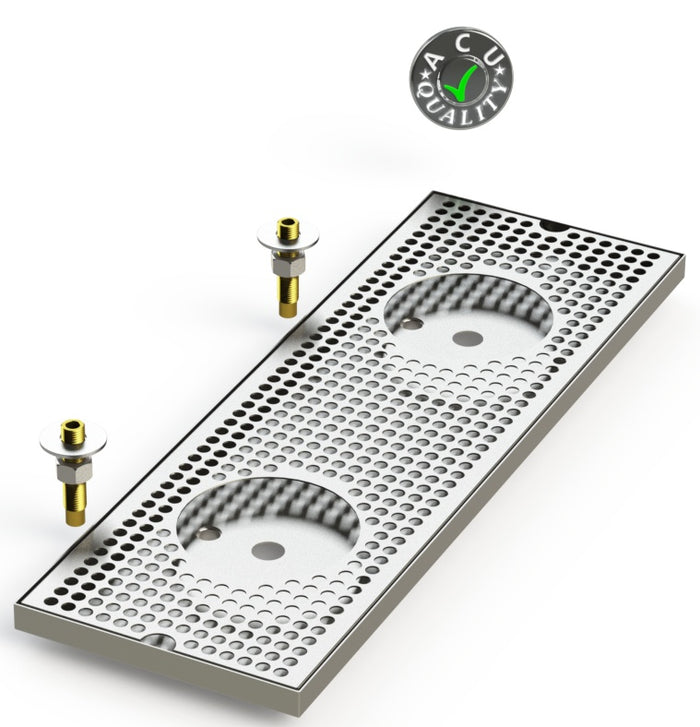 8" Wide Stainless Steel Surface Mount Beer Drip Tray with Double Drain and Double Rinser Holes