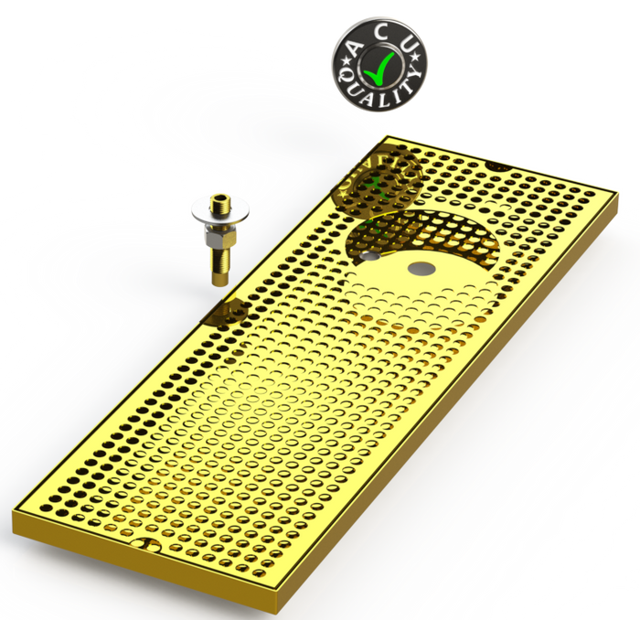 Trays are secured to the surface using supplied hardware. Drip Trays are made of 16 ga. Brass in #8 mirror finish