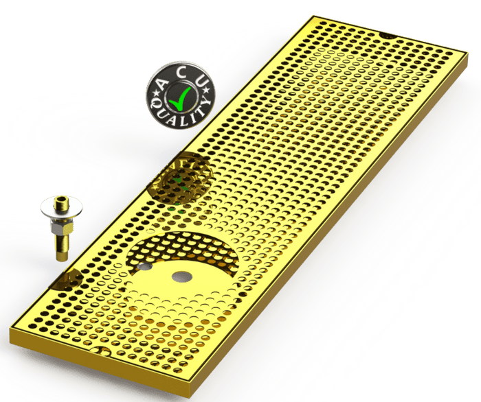 Trays are secured to the surface using supplied hardware. Drip Trays are made of 16 ga. Brass in #8 mirror finish