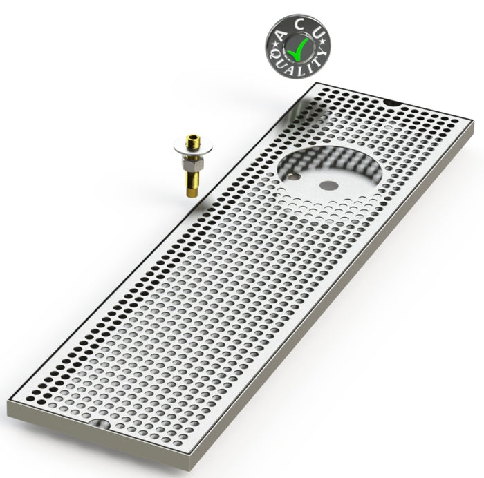 Trays are secured to the surface using supplied hardware. Drip Trays are made of 18 ga. Stainless Steel in #4 brushed Finish.