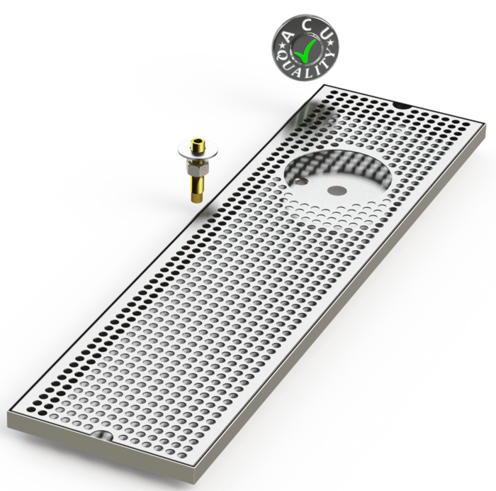 Trays are secured to the surface using supplied hardware. Drip Trays are made of 18 ga. Stainless Steel in #4 brushed Finish.