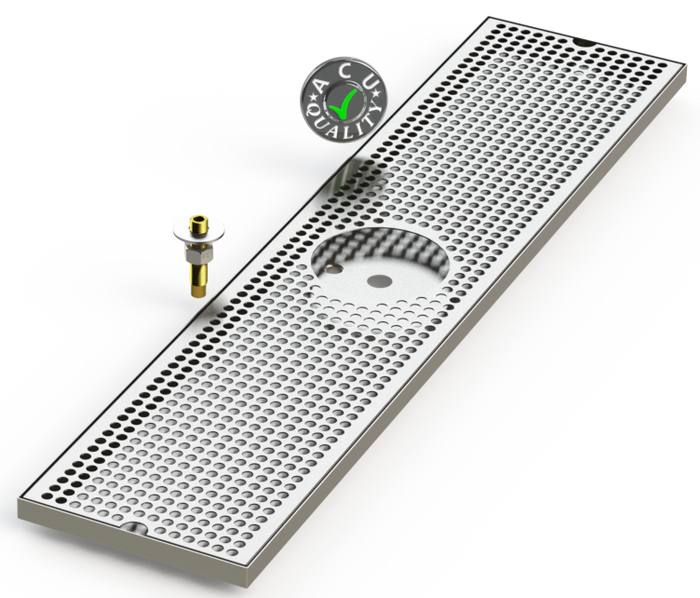 Trays are secured to the surface using supplied hardware. Drip Trays are made of 18 ga. Stainless Steel in #4 brushed Finish.