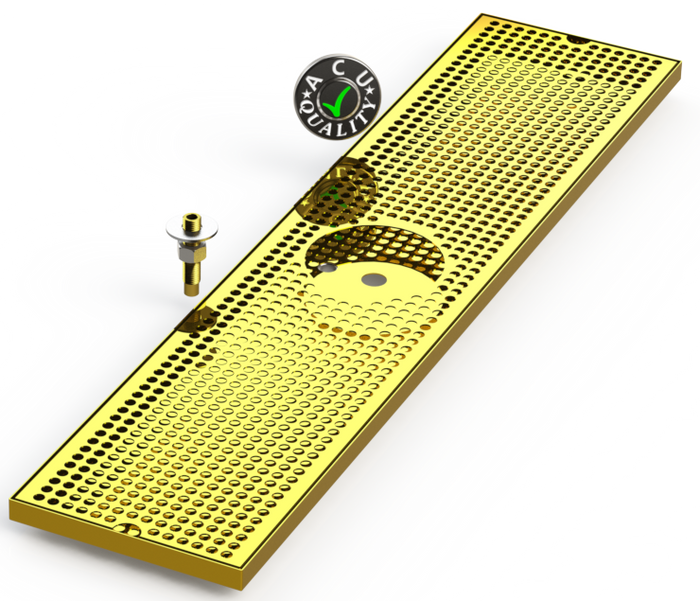 Trays are secured to the surface using supplied hardware. Drip Trays are made of 16 ga. Brass in #8 mirror finish