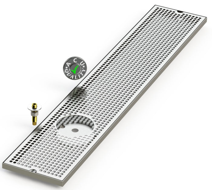 Trays are secured to the surface using supplied hardware. Drip Trays are made of 18 ga. Stainless Steel in #4 brushed Finish.