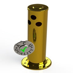 This Draft Arm (Draft Beer Tower) is a 3" X 12" Tower in Brass # 8 Mirror Finish. Our Draft Arms come with Rubatex insulation and a Neoprene gasket to aid in keeping the product cold. The removable cap makes it easy to assemble. The flanges are welded to the tubing thus eliminating dirt catches and producing a smooth seamless joint. The flanges are press formed from a single piece of material and have 4 countersunk holes for mounting. This column tower is for three faucets of draft beer.