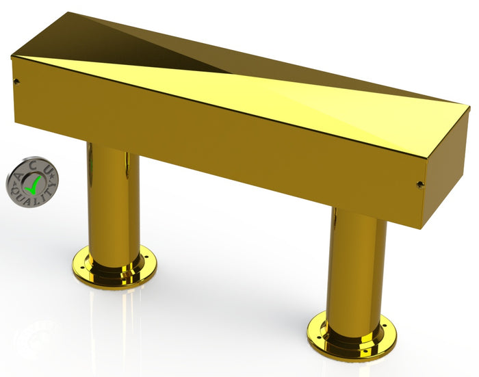 T-Towers are designed to mount to one or more pedestals. Our Pedestals are 10" tall. T-Towers are made of 16 ga. Brass in # 8 Mirror Finish. The removable faceplate is used to attach beer lines as easily as possible. T-Towers come with Styrofoam and Rubatex insulation and Neoprene gaskets to aid in keeping the product cold. Pedestals come in 3" diameter. The flanges on the pedestals are welded to the tubing thus eliminating dirt catches and producing a smooth seamless joint. The flanges are press formed from a single piece of material and have 4 countersunk holes for mounting. We supply the metal housing for that the beer lines go into. We do not include or sell taps or beer lines. We supply the suppliers of the Beer and Restaurant Industry with the finest stainless steel metal products since 1959.