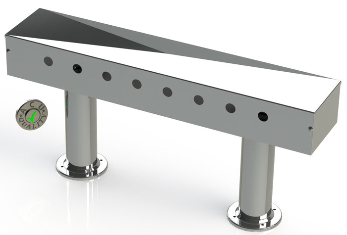 T-Towers are designed to mount to one or more pedestals. Our Pedestals are 10" tall. T-Towers are made of 18 ga. Stainless Steel in # 8 Mirror Finish. The removable faceplate is used to attach beer lines as easily as possible. T-Towers come with Styrofoam and Rubatex insulation and Neoprene gaskets to aid in keeping the product cold. Pedestals come in 3" diameter. The flanges on the pedestals are welded to the tubing thus eliminating dirt catches and producing a smooth seamless joint. The flanges are press formed from a single piece of material and have 4 countersunk holes for mounting. We supply the metal housing for that the beer lines go into. We do not include or sell taps or beer lines. We supply the suppliers of the Beer and Restaurant Industry with the finest stainless steel metal products since 1959.