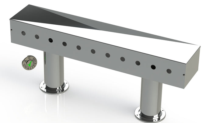 T-Towers are designed to mount to one or more pedestals. Our Pedestals are 10" tall. T-Towers are made of 18 GA. Stainless Steel in #8 Mirror Finish. The removable faceplate is used to attach beer lines as easily as possible. T-Towers come with Styrofoam and Rubatex insulation and Neoprene gaskets to aid in keeping the product cold. Pedestals come in 4" diameter. The flanges on the pedestals are welded to the tubing thus eliminating dirt catches and producing a smooth seamless joint. The flanges are press formed from a single piece of material and have 4 countersunk holes for mounting. We supply the metal housing for that the beer lines go into. We do not include or sell taps or beer lines. We supply the suppliers of the Beer and Restaurant Industry with the finest stainless steel metal products since 1959.