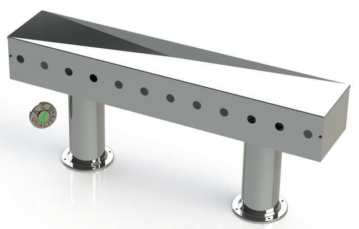 T-Towers are designed to mount to one or more pedestals. Our Pedestals are 10" tall. T-Towers are made of 18 GA. Stainless Steel in #8 Mirror Finish. The removable faceplate is used to attach beer lines as easily as possible. T-Towers come with Styrofoam and Rubatex insulation and Neoprene gaskets to aid in keeping the product cold. Pedestals come in 4" diameter. The flanges on the pedestals are welded to the tubing thus eliminating dirt catches and producing a smooth seamless joint. The flanges are press formed from a single piece of material and have 4 countersunk holes for mounting. We supply the metal housing for that the beer lines go into. We do not include or sell taps or beer lines. We supply the suppliers of the Beer and Restaurant Industry with the finest stainless steel metal products since 1959.