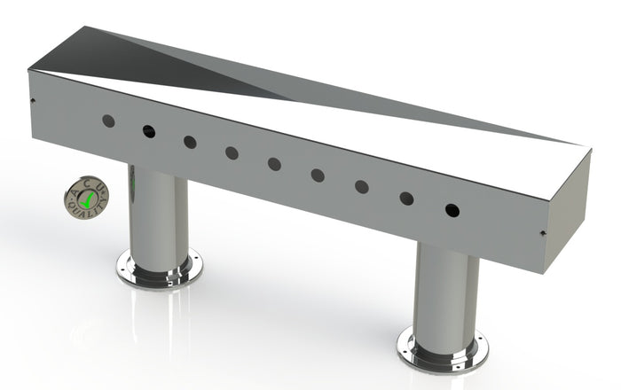 T-Towers are designed to mount to one or more pedestals. Our Pedestals are 10" tall. T-Towers are made of 18 GA. Stainless Steel in #8 Mirror Finish. The removable faceplate is used to attach beer lines as easily as possible. T-Towers come with Styrofoam and Rubatex insulation and Neoprene gaskets to aid in keeping the product cold. Pedestals come in 4" diameter. The flanges on the pedestals are welded to the tubing thus eliminating dirt catches and producing a smooth seamless joint. The flanges are press formed from a single piece of material and have 4 countersunk holes for mounting. We supply the metal housing for that the beer lines go into. We do not include or sell taps or beer lines. We supply the suppliers of the Beer and Restaurant Industry with the finest stainless steel metal products since 1959.