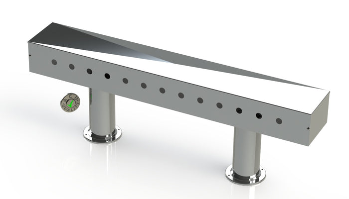 T-Towers are designed to mount to one or more pedestals. Our Pedestals are 10" tall. T-Towers are made of 18 GA. Stainless Steel in #8 Mirror Finish. The removable faceplate is used to attach beer lines as easily as possible. T-Towers come with Styrofoam and Rubatex insulation and Neoprene gaskets to aid in keeping the product cold. Pedestals come in 4" diameter. The flanges on the pedestals are welded to the tubing thus eliminating dirt catches and producing a smooth seamless joint. The flanges are press formed from a single piece of material and have 4 countersunk holes for mounting. We supply the metal housing for that the beer lines go into. We do not include or sell taps or beer lines. We supply the suppliers of the Beer and Restaurant Industry with the finest stainless steel metal products since 1959.