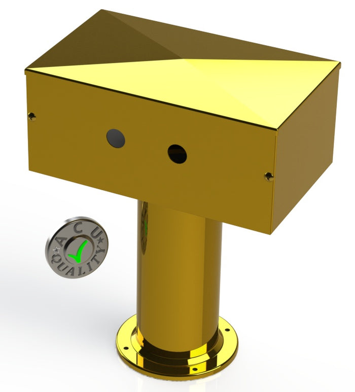 T-Towers are made of 16 ga. Brass in #8 mirrored finish. T-Towers look like a T, hints their name. They are popular with Kegerator Brewers through the industrial bar industry because of their unique look. T-Towers come with Styrofoam and Rubatex insulation and Neoprene gaskets to aid in keeping the product cold. The flanges on the pedestals are welded to the tubing thus eliminating dirt catches and producing a smooth seamless joint. The flanges are press formed from a single piece of material and have 4 countersunk holes for mounting. We do not include or sell taps or beer lines. We supply the suppliers of the Beer and Restaurant Industry with the finest stainless steel metal products since 1959.