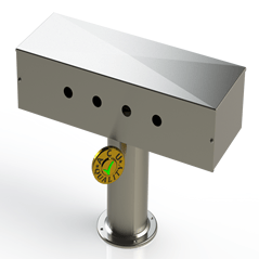 T-Towers are designed to mount to one or more pedestals. Our Pedestals are 10" tall. T-Towers are made of 18 ga. Stainless Steel in #4 brushed finish. The removable faceplate is used to attach beer lines as easily as possible. T-Towers come with Styrofoam and Rubatex insulation and Neoprene gaskets to aid in keeping the product cold. Pedestals come in 4" diameter. The flanges on the pedestals are welded to the tubing thus eliminating dirt catches and producing a smooth seamless joint. The flanges are press formed from a single piece of material and have 4 countersunk holes for mounting. We supply the metal housing for that the beer lines go into. We do not include or sell taps or beer lines. We supply the suppliers of the Beer and Restaurant Industry with the finest stainless steel metal products since 1959.