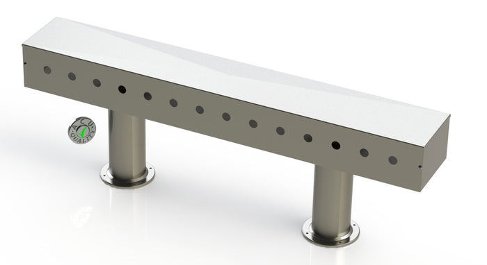 T-Towers are designed to mount to one or more pedestals. Our Pedestals are 10" tall. T-Towers are made of 18 ga. Stainless Steel in #4 brushed finish. The removable faceplate is used to attach beer lines as easily as possible. T-Towers come with Styrofoam and Rubatex insulation and Neoprene gaskets to aid in keeping the product cold. Pedestals come in 4" diameter. The flanges on the pedestals are welded to the tubing thus eliminating dirt catches and producing a smooth seamless joint. The flanges are press formed from a single piece of material and have 4 countersunk holes for mounting. We supply the metal housing for that the beer lines go into. We do not include or sell taps or beer lines. We supply the suppliers of the Beer and Restaurant Industry with the finest stainless steel metal products since 1959.