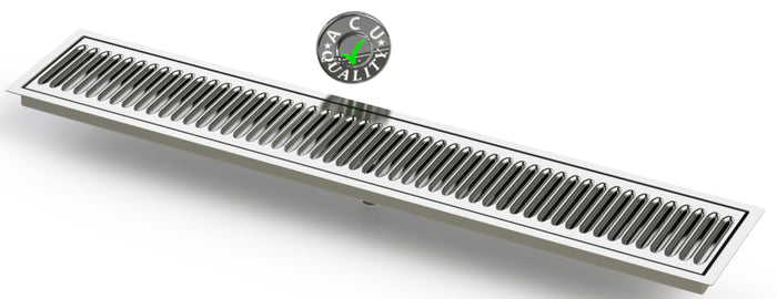 The Flush Mount with Drain (FMD) style drip trays are designed to mount flush to any surface with a relieved opening. Drip Trays are made of 18 ga. Stainless Steel in #4 brushed finish. The corners and seams are welded and ground to either a brushed or polished high finish. All exposed edges are deburred smooth for safety and appearances. Each tray comes with a standard 20 ga. louvered screen. Drains are 1 1/2" long, 1/2" NPT Pipe Thread. Angled bottom for drainage. We supply the suppliers of Restaurant and Bar Equipment.
