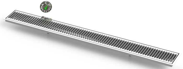 The FM-DD style drip tray is designed to mount flush to any surface with a relieved opening. Flush Mounts are made of 18 ga. Stainless Steel in #8 Mirror finish.The corners and seams are welded and ground to either a brushed or polished high finish. All exposed edges are deburred smooth for safety and appearances. Each tray is available with a standard 20 ga. louvered screen. Drains are 1 1/2" long, 1/2" NPT Pipe Thread. This Flush Mount also has an angled bottom for drainage.