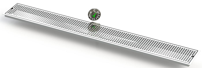 The FMD style drip tray is designed to mount flush to any surface with a relieved opening. Flush Mounts are made of 18 ga. Stainless Steel in #8 Mirror finish.The corners and seams are welded and ground to either a brushed or polished high finish. All exposed edges are deburred smooth for safety and appearances. Each tray is available with a standard 18 ga. perforated screen. Drains are 1 1/2" long, 1/2" NPT Pipe Thread. This Flush Mount also has an angled bottom for drainage.