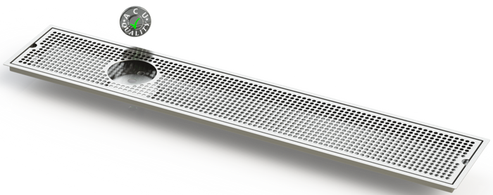 The Flush Mount with Left Drain and Rinser Hole style drip trays are designed to mount flush to any surface with a relieved opening. Drip Trays are made of 18 gauge Stainless Steel in #4 brushed finish. The corners and seams are welded and ground to either a brushed or polished high finish. All exposed edges are deburred smooth for safety and appearances. Each tray comes with a standard 18 gauge perforated screen. Drains are 1 1/2" long, 1/2" NPT Pipe Thread. Angled bottom for drainage. We supply the suppliers of Restaurant and Bar Equipment.