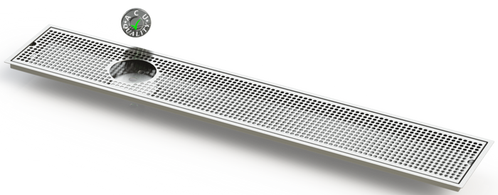 The Flush Mount with Left Drain and Rinser Hole style drip trays are designed to mount flush to any surface with a relieved opening. Drip Trays are made of 18 gauge Stainless Steel in #4 brushed finish. The corners and seams are welded and ground to either a brushed or polished high finish. All exposed edges are deburred smooth for safety and appearances. Each tray comes with a standard 18 gauge perforated screen. Drains are 1 1/2" long, 1/2" NPT Pipe Thread. Angled bottom for drainage. We supply the suppliers of Restaurant and Bar Equipment.