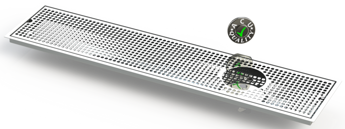 The Flush Mount with Right Drain and Rinser Hole style drip tray is designed to mount flush to any surface with a relieved opening. Flush Mounts are made of 18 gauge Stainless Steel in #8 Mirror finish. The corners and seams are welded and ground to either a brushed or polished high finish. All exposed edges are deburred smooth for safety and appearances. Each tray is available with a standard 18 gauge perforated screen. Drains are 1 1/2" long, 1/2" NPT Pipe Thread. This Flush Mount also has an angled bottom for drainage.