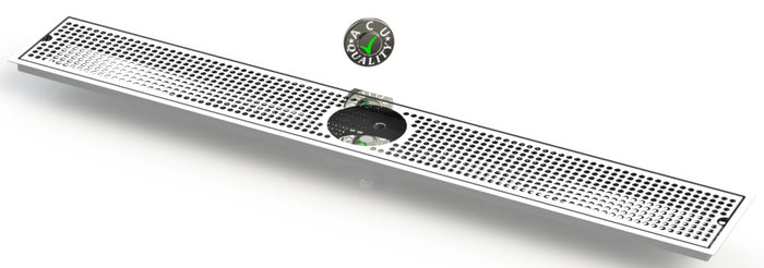 The Flush Mount with Drain and Rinser Hole style drip tray is designed to mount flush to any surface with a relieved opening. Flush Mounts are made of 18 gauge Stainless Steel in #8 Mirror finish. The corners and seams are welded and ground to either a brushed or polished high finish. All exposed edges are deburred smooth for safety and appearances. Each tray is available with a standard 18 gauge perforated screen. Drains are 1 1/2" long, 1/2" NPT Pipe Thread. This Flush Mount also has an angled bottom for drainage.